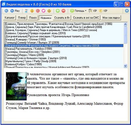 и т.д. Видеогляделка содержит в себе базу более 7 тысяч фильмов и